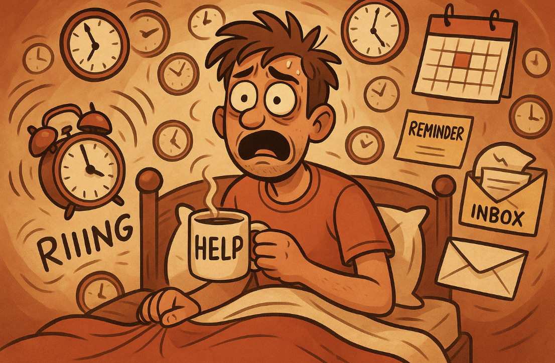 Waking up every morning feels like Phil Connors in Groundhog Day (1993), minus the growth arc, just inbox hell and the free office coffee that always tastes like regret.