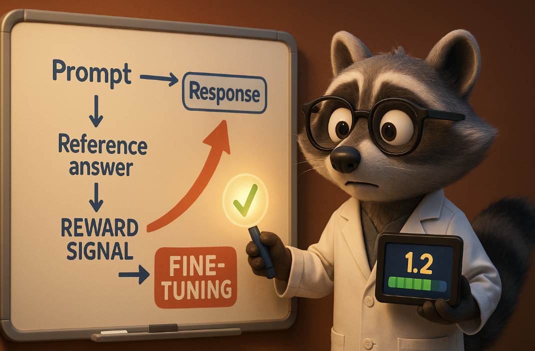 - a reward signal (typically either binary, correct/incorrect, or comparative, which answer is better out of several) is generated;