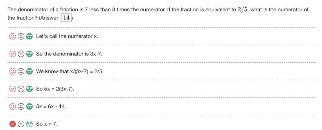 OpenAI researchers Lightman et al. (2024) extended this to the “let’s verify step by step” principle: train the LLM to give verifiable chain-of-thought steps and then actually check them, getting a rich signal. This only works for relatively formal domains such as mathematical reasoning, but if it works it should be helpful, right?
