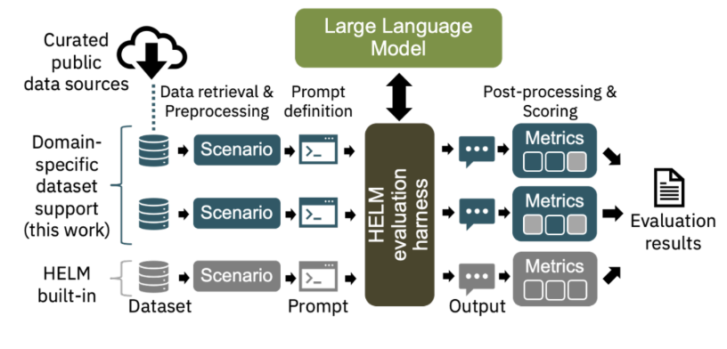 Enterprise Bench extends Stanford's HELM (Holistic Evaluation of Language Models) framework, and the overall evaluation structure is quite straightforward: