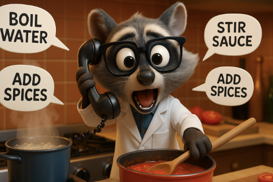 Imagine you're teaching someone to cook over the phone. You can't see what they're doing, and they can't show you the kitchen. So what do you do? You build a shared mental model through words: "First, heat the pan until a drop of water sizzles. Now crack the eggs; you should hear them start cooking immediately." Each instruction comes with an expected outcome, a little prediction about how the world will change.