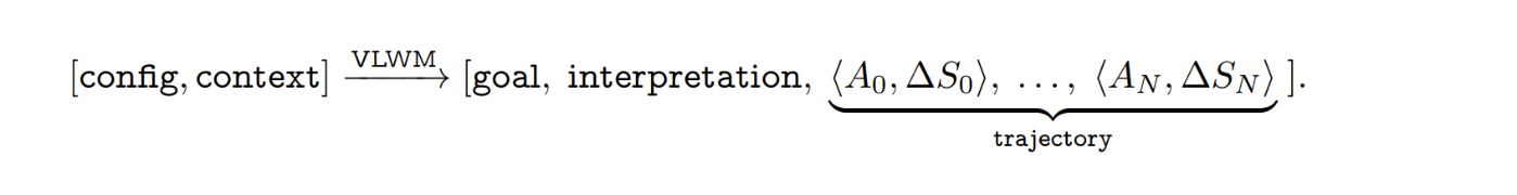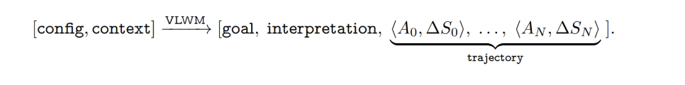- and a trajectory of proposed ⟨Action, World‑State Δ⟩ pairs, again in a natural language.